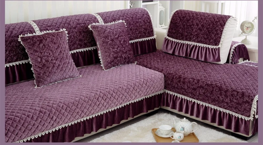 Мягкий бархатный велюр является интересным качественным материалом для пошива чехлов для дивана. Ценовая стоимость велюра относительно доступнее, чем излюбленный всеми бархат. Фактуру ворсинок возможно как направить в одно положение, так и “растрепать” в разные стороны. Изготавливая велюр, специалисты начёсывают, укладывают, либо приглаживают его.