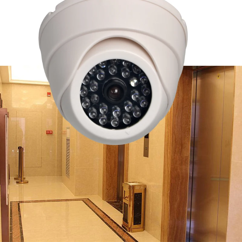 - Имитационные камеры – самый бюджетный способ охранять территорию с помощью камер. Это ненастоящие камеры видеонаблюдения, которые оказывают психологический эффект на нежелательных «гостей» и отпугивают не менее эффективно, чем настоящие камеры видеонаблюдения. Визуально, модели имитационных камер ничем не отличаются от обычных камер видеонаблюдения.