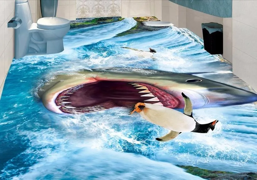 - Влагостойкость, водонепроницаемость. 3Д полы идеально подходят для ванны, туалета, бассейна. Они не пропускают влагу, не плесневеют и не деформируются.