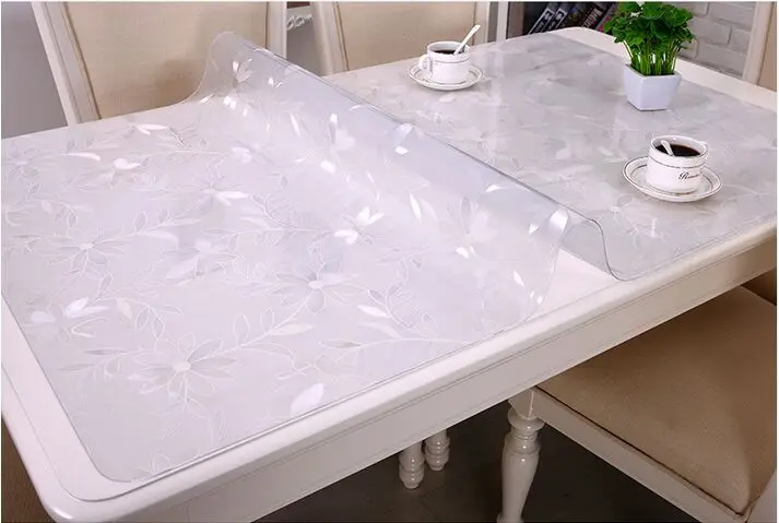 Сегодня в специализированных магазинах по продаже элементов декорирования интерьера можно услышать совсем незнакомое, загадочное название скатерти — «мягкое стекло». Хочется сразу же снять пелену таинственности. «Скатерть-мягкое стекло» просто название скатерти из поливинилхлорида (ПВХ). Маркетологи придумали это красивое обозначение для того, чтобы продавать скатерти из ПВХ по завышенной цене. Качество скатерти из поливинилхлорида мало отличается от скатерти из мягкого стекла, вся разница заметна только в цене.