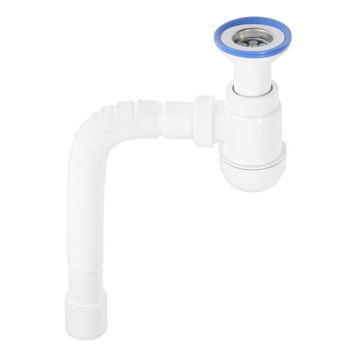 Такая ловушка отличается простотой установки и дешевизной. Благодаря отсутствию составов на трубке риск протечки воды сведен к нулю. Благодаря своей способности растягиваться, этот тип слива позволяет перемещать мойку, при этом, не отсоединяя ее от выхода воды. Это очень удобно для ремонта. Гофрированный сифон подходит для раковин, где мало места для установки слива.