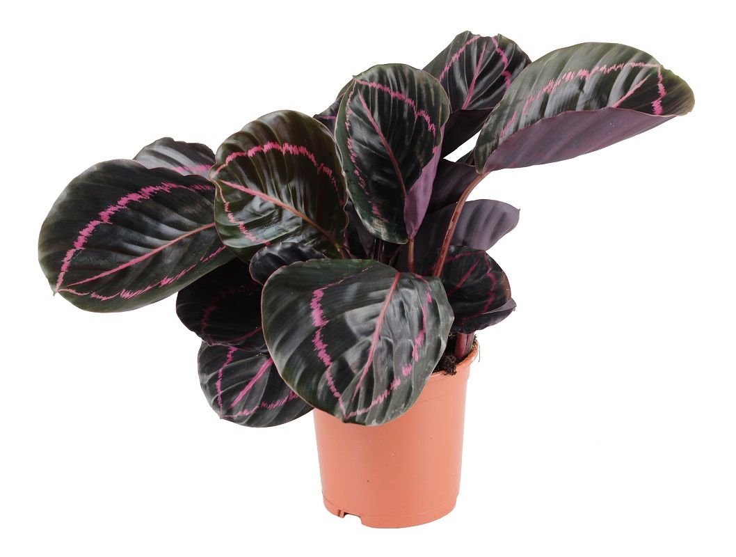 Что такое Калатея Дотти? Калатея в основном происходит из тропических районов Центральной и Южной Америки. Калатея Дотти — это разновидность калатеи с темно-зелеными — почти черными — листьями с ярко-розовой пестротой. Нижняя сторона листьев розовато-зеленая, цвет становится темнее по мере взросления листьев.