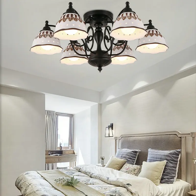 Наиболее популярны стандартные люстры с несколькими гнездами для лампочек. Они красиво смотрятся в спальне. В магазине имеется огромное разнообразие изделий, отличающихся по декору и цветовому решению.