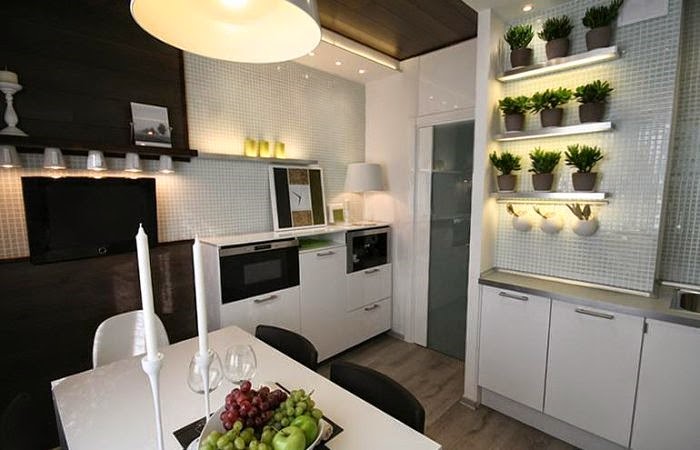 Кухня с телевизором на стене